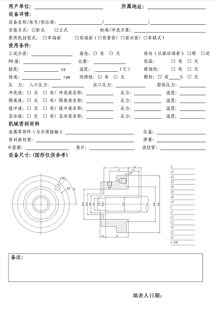 机械密封选型数据表